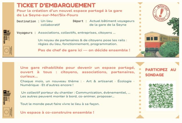 La gare de La Seyne-sur-Mer, ce sont 280 m2 d’espaces aménagés sur deux niveaux avec un accès PMR, pour construire un lieu évolutif et convivial, un lieu de partage et de ressources pour tous, inclusif et solidaire, un lieu pour réinventer demain.